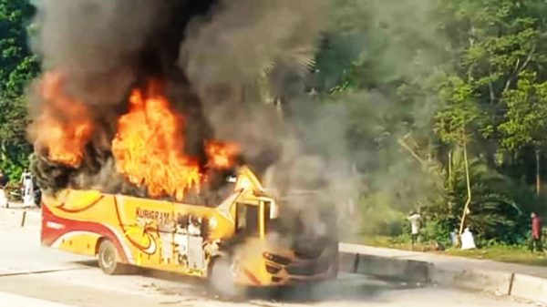 বগুড়ায় যাত্রীবাহী চলন্ত বাসে আগুন